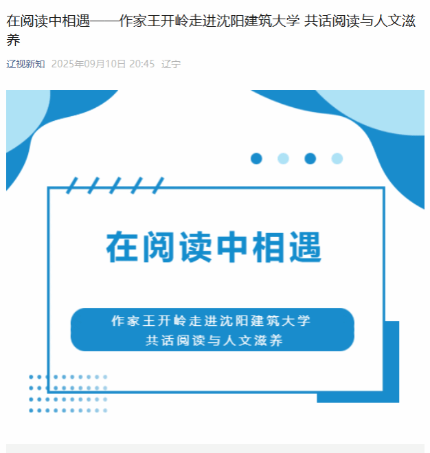 편집자 주: 합리성과 시가 조화를 이룰 때, 공학적 지혜가 인류의 빛을 만날 때 9월 10일, 심양 건주대온라인카지노에서 인터뷰 시리즈 '독서의 만남'이 찾아왔습니다 유명한 작가 Wang Kailing은 Jianshe University의 교사와 학생들에게 심층적인 인문학적 대화를 가져왔습니다 책의 향기 속에서 그는 독서가 어떻게 영적인 집을 짓고, 전문적인 영혼을 키우며, 미래 건축업자의 영적인 길을 밝혀줄 수 있는지에 대해 논의했습니다 베이더우미디어(Beidou Media)와 요녕성 라디오 TV 청년 채널의 '신지식' 칼럼이 이에 대한 홍보 보도를 진행했습니다타오 이제 관련 보고서가 다음과 같이 재현됩니다